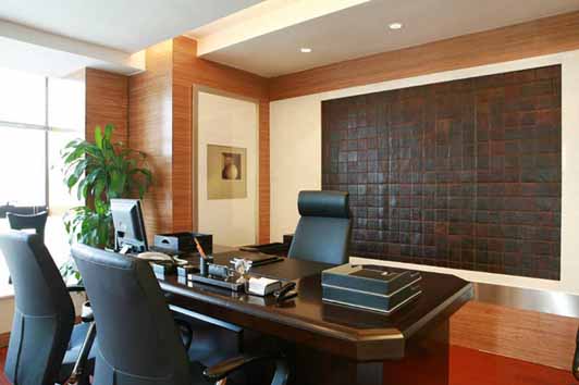 由效果圖可以看出,辦公班臺背后是一張圍棋格局圖,在顏色的選擇上可以體現它的嚴謹、穩重的良好工作形象。這是某會計師事務所經理辦公室裝修,表達企業認真、細心、慎重的服務理念,給客戶傳遞信心。