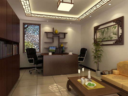 而且對于做工的要求很高,上圖這是簡中風格的董事長辦公室裝修,表現出的效果既有現代的時尚潮流的自由,簡中風格的辦公室裝修采用精細的雕刻裝飾品、畫等來布置辦公空間,打造出的一個完美的裝修案例。