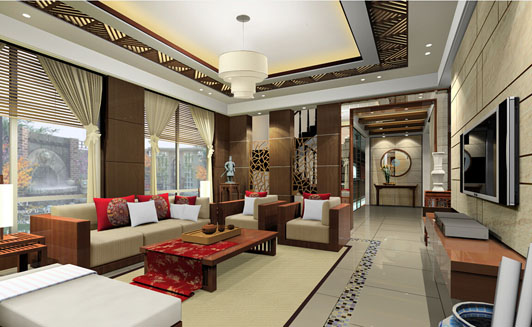 這種風格整體的效果表現得很沉穩。它的裝飾品的顏色較深,中式畫等元素,想非常艷麗,室內采用了中國風的紫檀、中式吊燈,講究自然和諧的搭配。